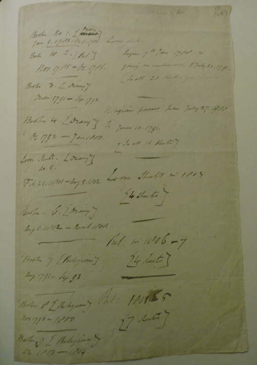 Some of the diaries and journals available to Robert Wilberforce in the 1830s are no longer extant. Extracts were included in the 1838 Life of William Wilberforce, but the original manuscripts are not known to exist either in libraries or in private hands. Robert made a list of the ‘books’ and ‘loose sheets’ available to him (see below).